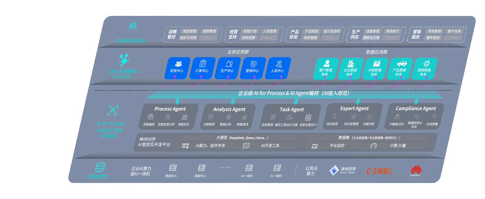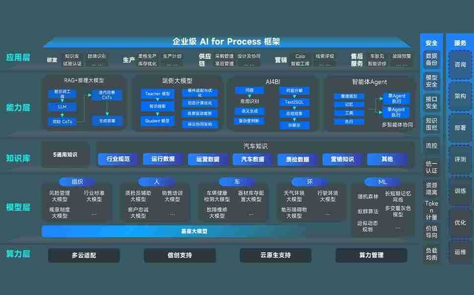 端到端的一站式AI工作空间深度融合了从企业战略规划到日常经营的全流程业务板块,,,,定向解决车企内部领域多、、、部门多、、链条长、、、、场景碎片化等难题,,,支持车企快速构建以AI为核心的生产力写作体系,,,实现任务执行与AI能力的无缝集成与交互
